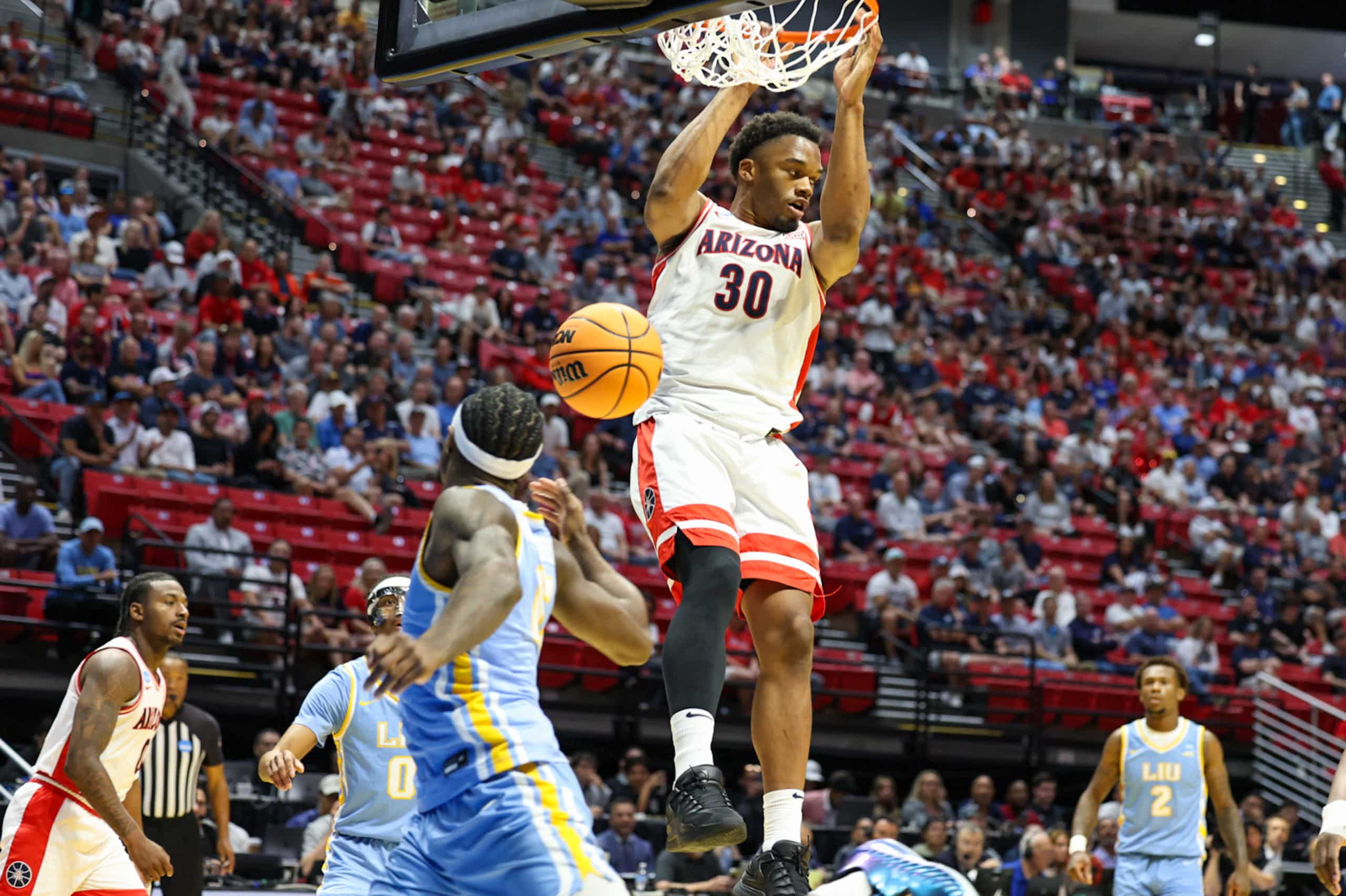 📸 Photos captured by Francisco Rodriguez/Latino Sports on Friday, March 20th – No. 1 Arizona blew out No. 16 LIU by a final of 92-58. The Wildcats will go up against No. 9 Utah State next in the Round of 32 scheduled for this Sunday, March 22nd.Â