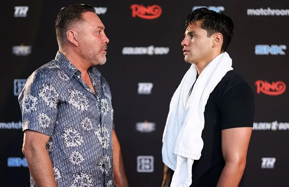 Oscar De La Hoya and Ryan Garcia have been feuding for years on and off in part to Garcia’s contract disputes and claims with Golden Boy – Image Credit: The Ring Magazine