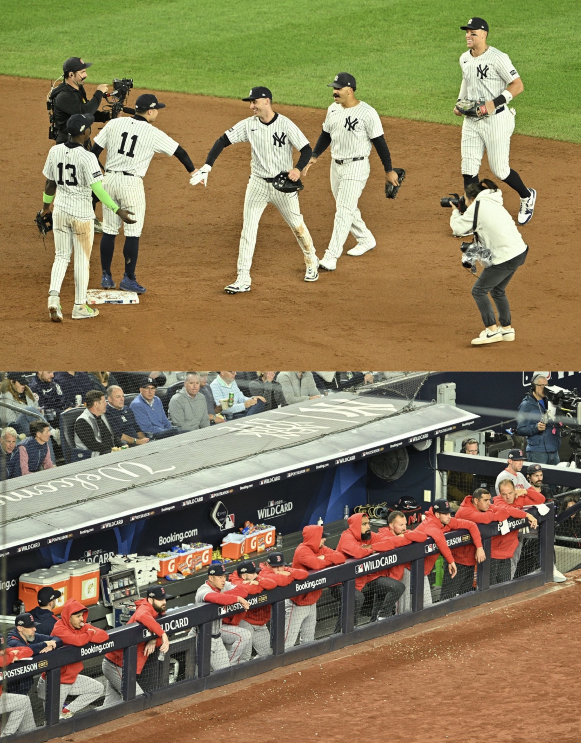 And the Yankees became the first team to win the Wild Card Series after losing the first game in the new postseason format, which in itself had cause for a raucous celebration. And of course a team with momentum, as the Yankees have shown, is destined to take this ride to consecutive World Series appearances. But with little time to keep the celebration going, the Yankees took a team photo on the field, quickly dressed, and boarded buses to the airport.