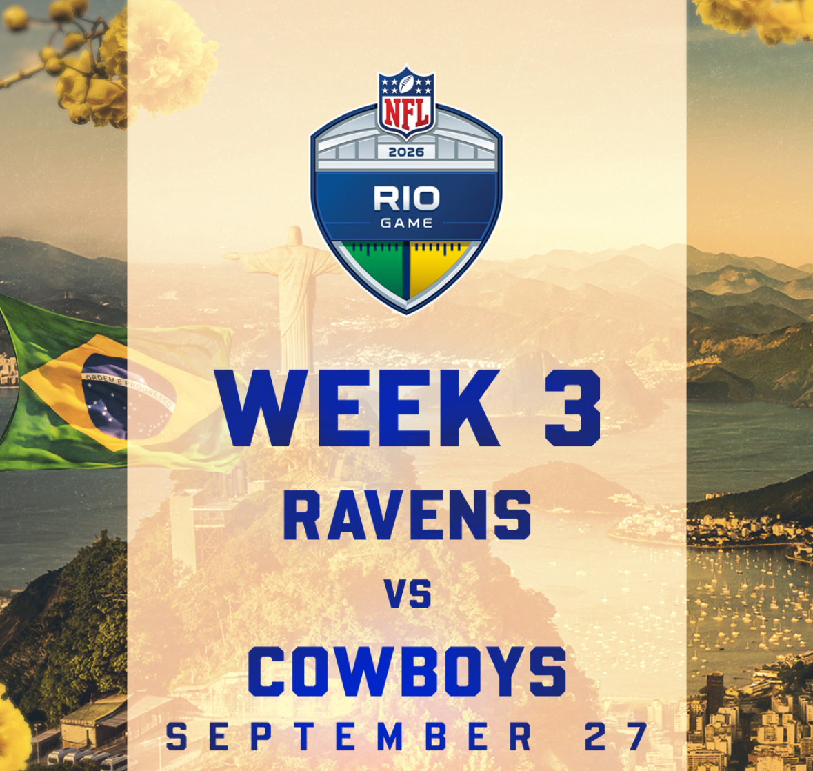 RIO DE JANEIRO, BRAZIL — During the NFL Draft in Pittsburgh, the league announced that the Baltimore Ravens will take on the Dallas Cowboys in the 2026 NFL Rio Game. The matchup will take place on Sunday, Sept. 27 at the iconic Maracanã Stadium. It will air on CBS and Paramount+ at 4:25 p.m. ET, and on mobile with NFL+. The Cowboys were previously announced.