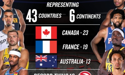 / 6 months agoNBA rosters feature record 135 international players from record-tying 43 countries across six continents