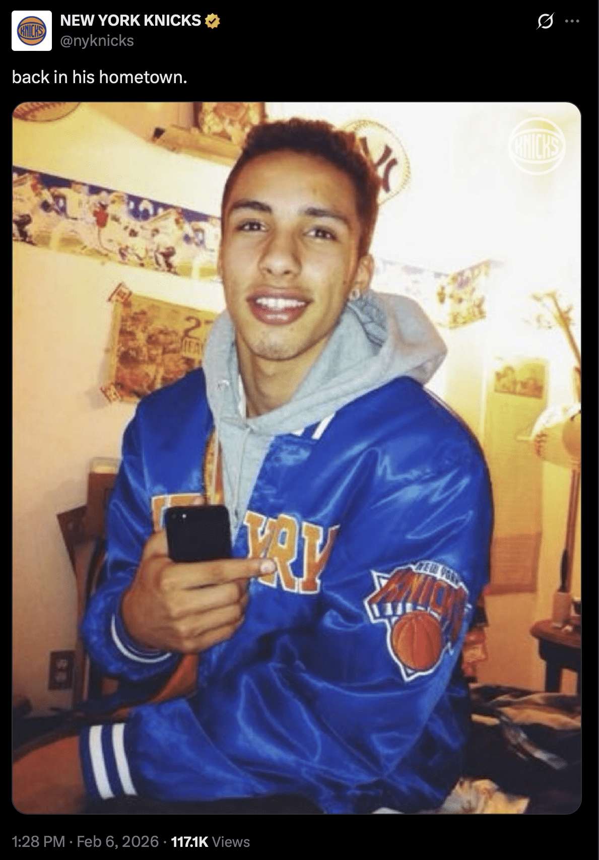 Soon after the trade was made official with the Pelicans and New York, the Knicks’ X/Twitter account posted a photo of a young Jose Alvarado in a Knicks jacket – Image Credit: @nyknicks on X/Twitter