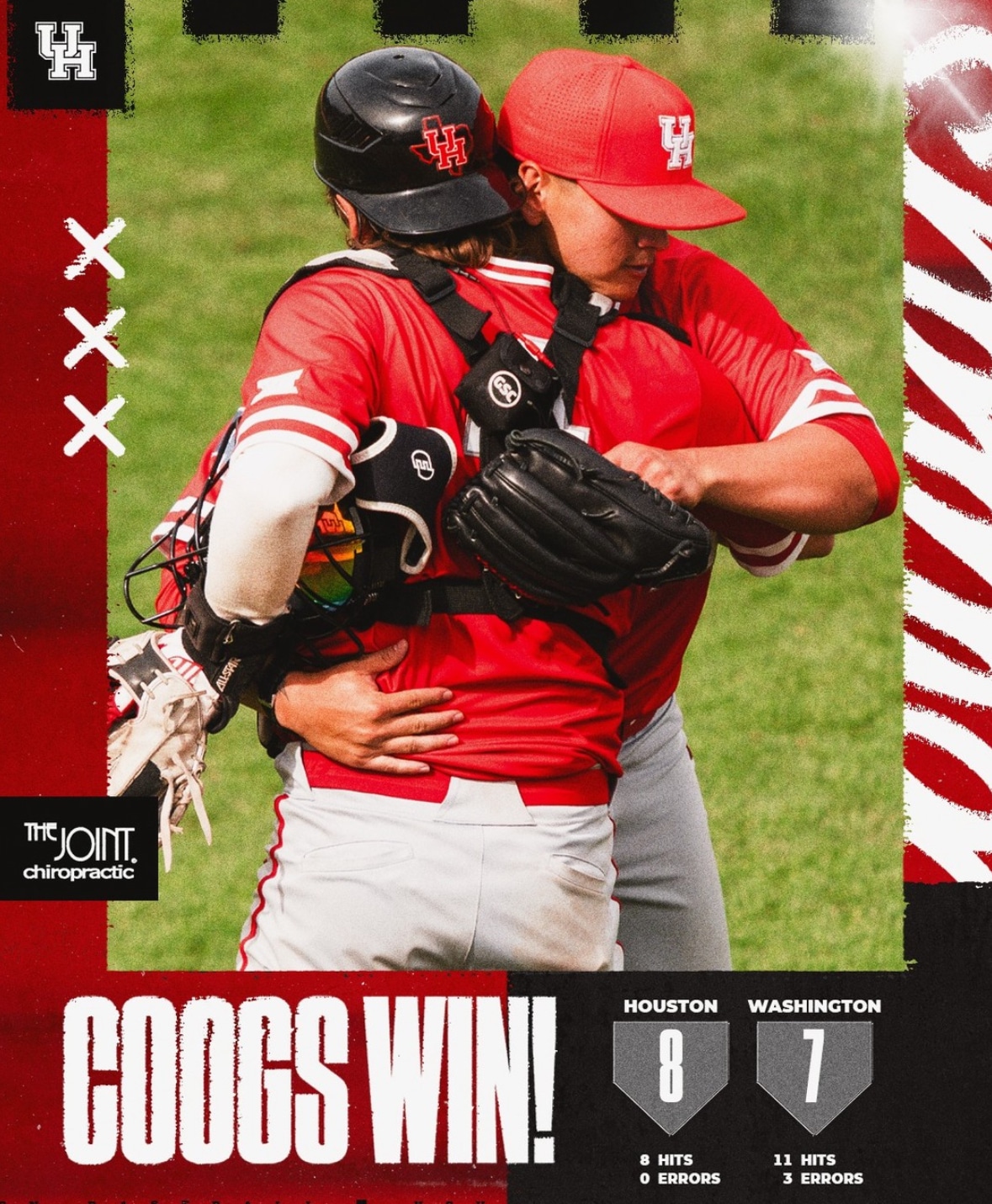 Watch the game-ending play of Monday’s thrilling Houston win against Washington, a strike-them-out, throw-them-out double play (HERE) – Image Credit: Houston Athletics