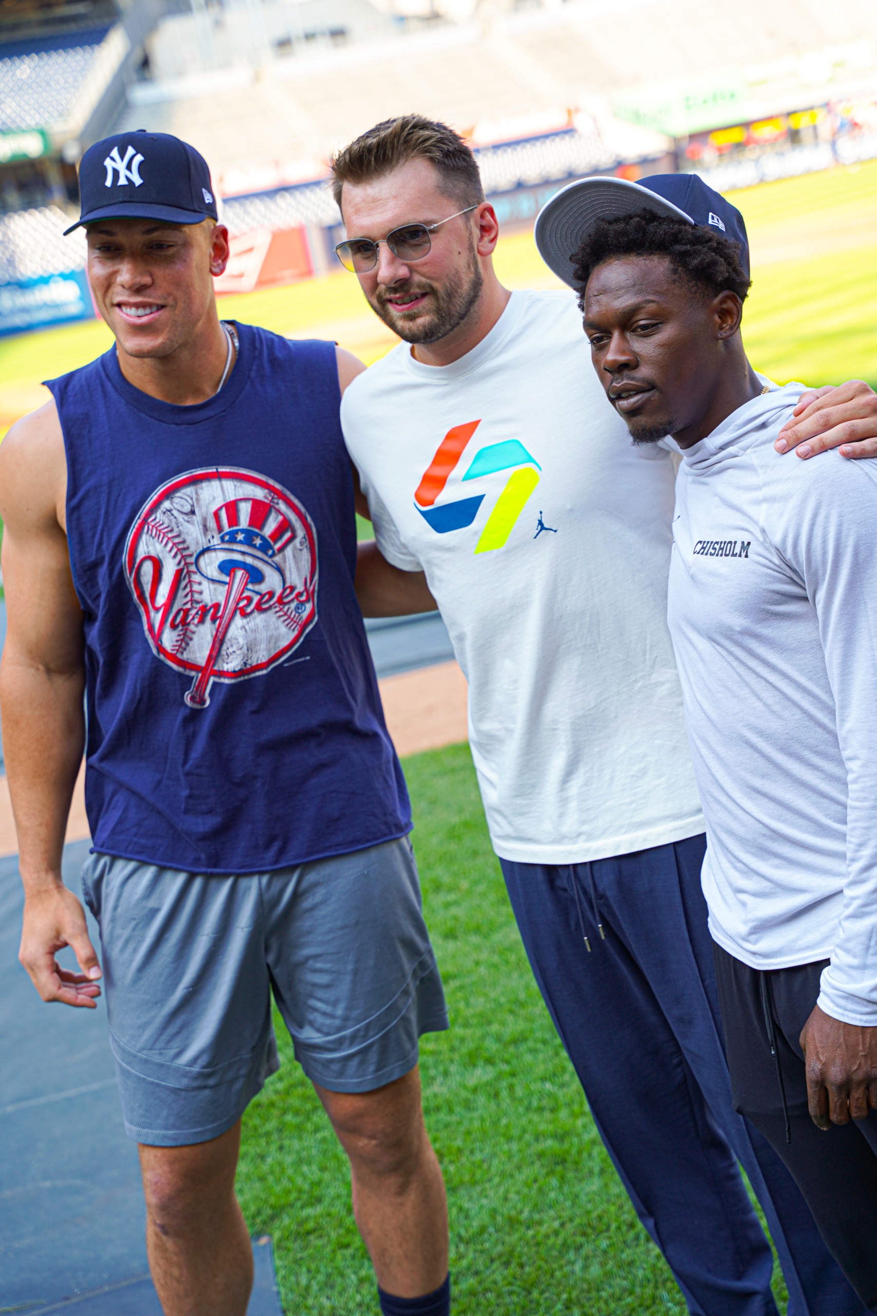 Along with Judge, rehabbing from a right flexor strain, Dončić —who recently announced the start of a global one-on-one basketball tournament, called, “The One,” with events scheduled in New York, Chicago, and Los Angeles—had the opportunity to link up with fellow Jordan Brand athlete Jazz Chisholm Jr. on the field, and several additional Yankees in the clubhouse.