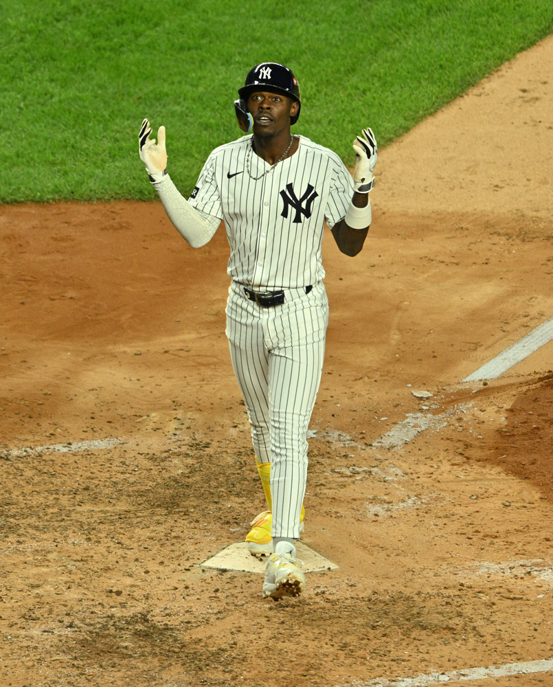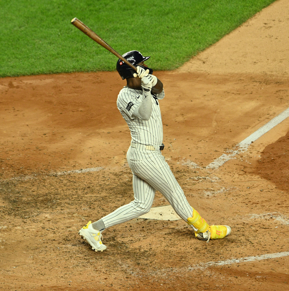 Jazz Chisholm Jr. joined in with Aaron Judge, hitting a home run of his own in the fifth inning of Game 3 of the ALDS – Image Credit: Bill Menzel/Latino Sports