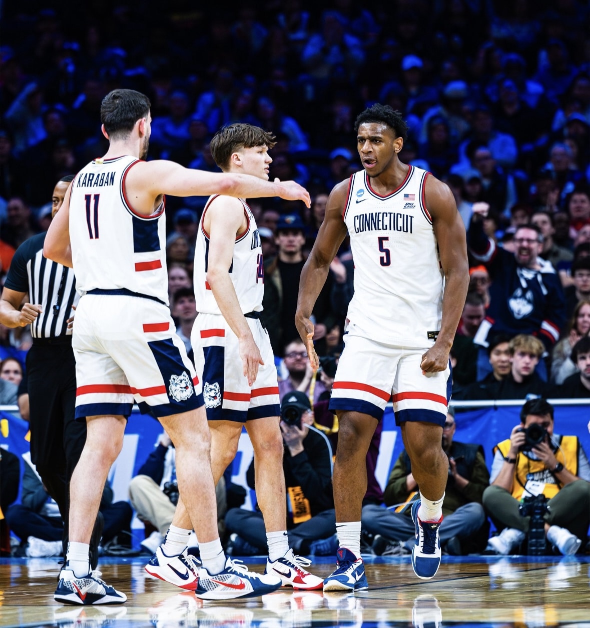 With Smith controlling the game as UConn’s floor general, bringing the ball up on many possessions, paired with Reed Jr.’s minute by minute dominance, causing space on the offensive end to open up even more than it already was, redshirt senior Alex Karaban scored 22 points at ease while freshman Braylon Mullins had 12.