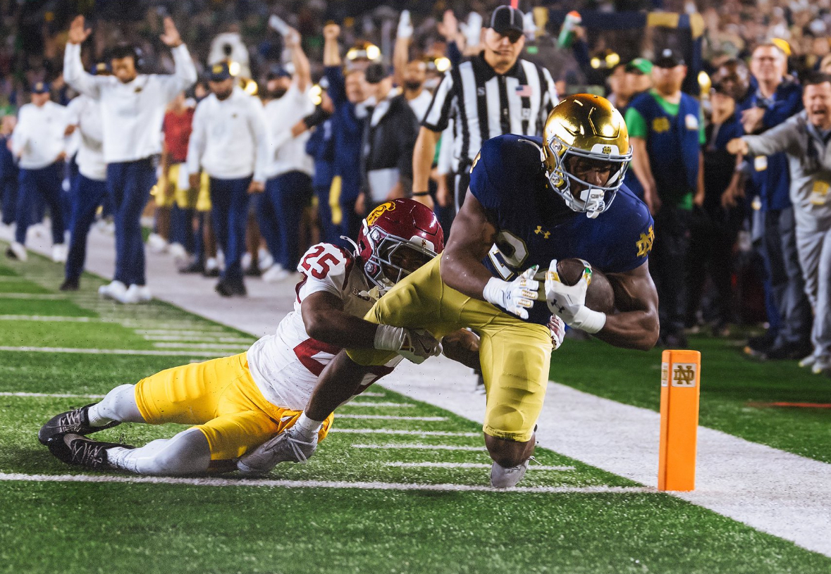 Notre Dame later stopped USC on a critical fourth-and-one with 6:02 left and sealed the win when Luke Talich intercepted Maiava with 1:06 left in regulation.