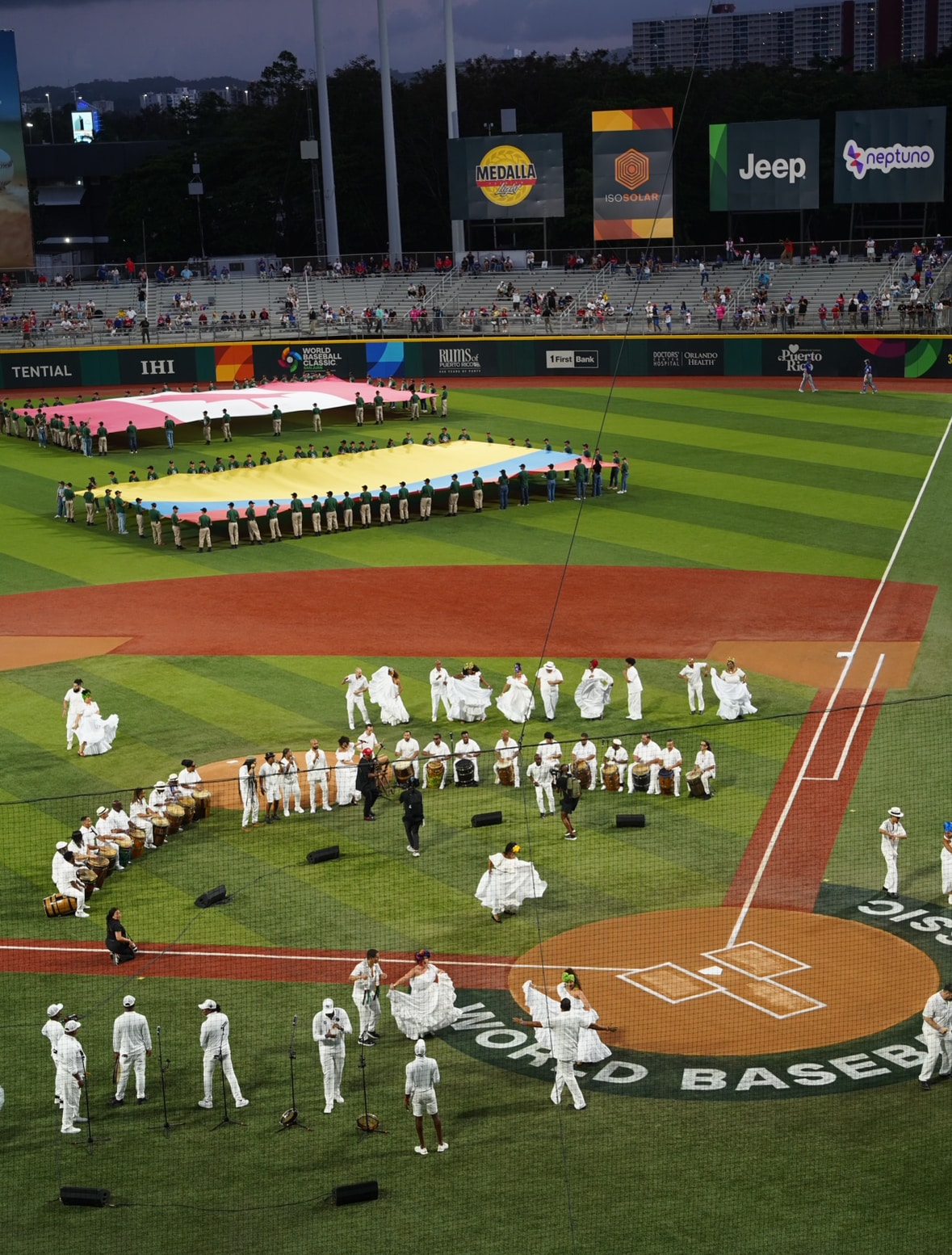 Before the first pitch was even thrown, Hiram Bithorn Stadium transformed into a cultural showcase of the Caribbean—with Puerto Rico’s Bomba y Plena filling the stadium, a powerful Afro-Puerto Rican music and dance tradition rooted in the island’s African heritage. Colombia has its own version with Cumbia and Mapalé, both iconic Afro-Colombian rhythms born from centuries of resistance and cultural fusion among enslaved Africans during the 16th through 18th centuries.