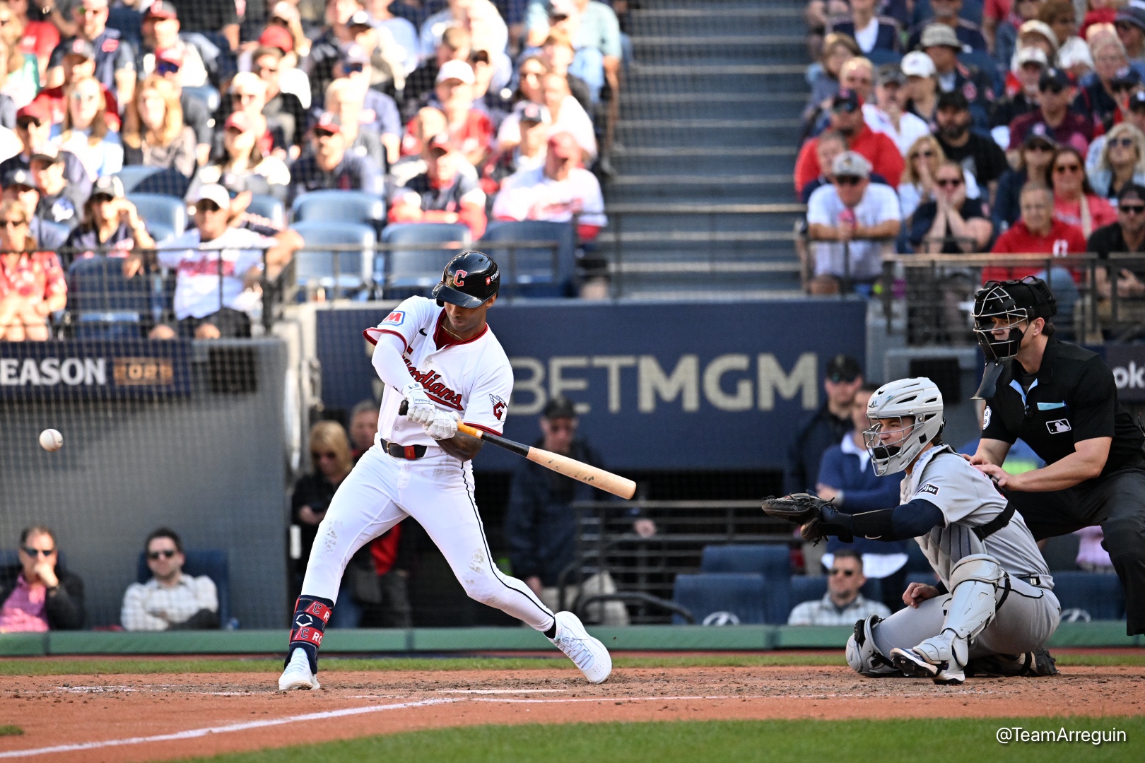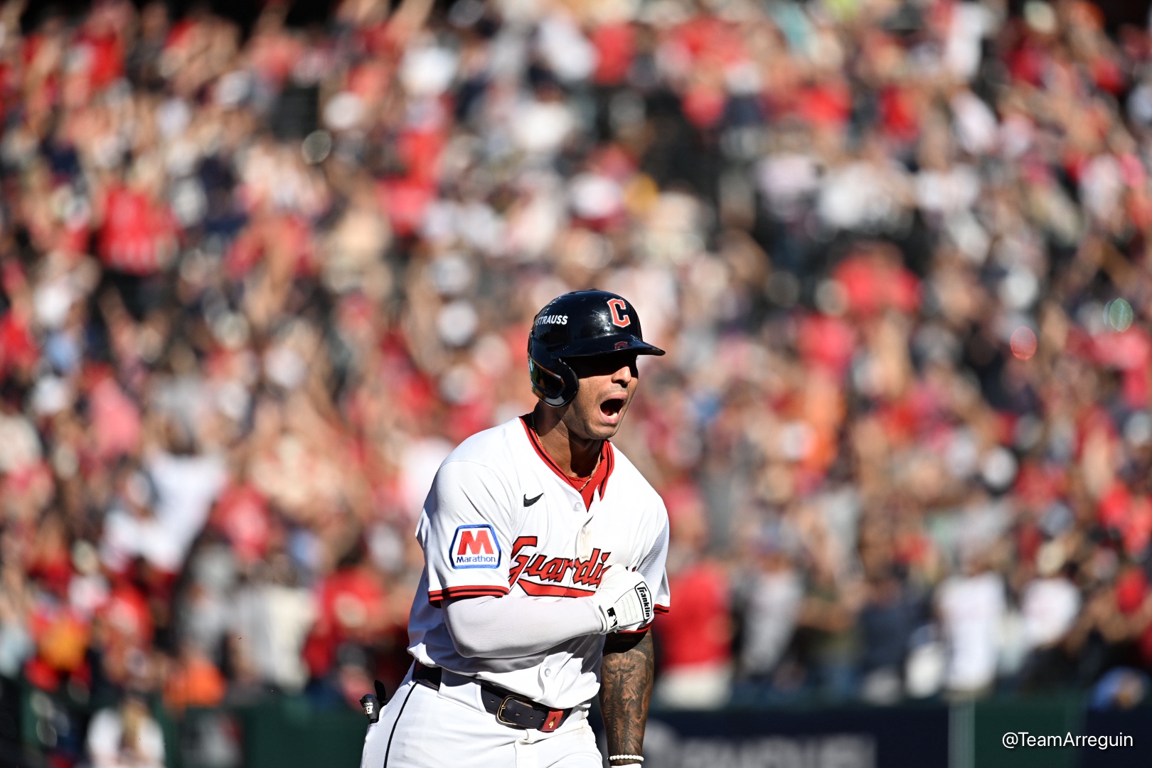 Brayan Rocchio made the city of Cleveland go ballistic on one swing of the bat Wednesday afternoon in Game 2 of the AL Wild Card Series – Image Credit: Larry C. Arreguin/Latino Sports