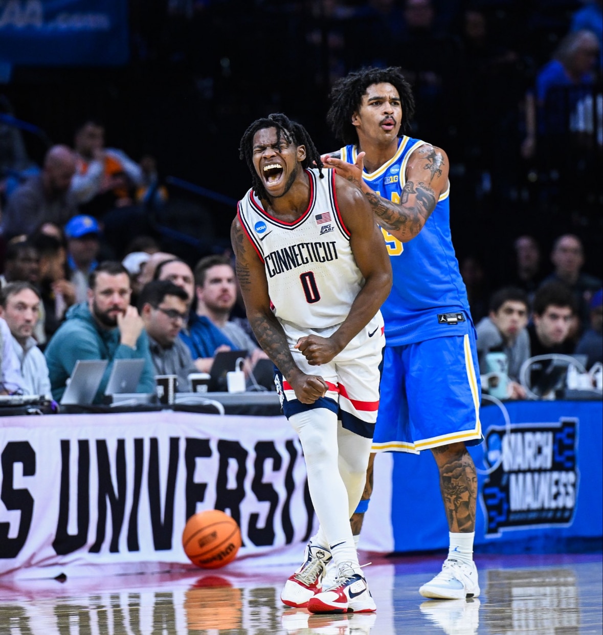 At that point, with just 29 seconds remaining in number one-seeded UConn’s Round of 32 rock fight vs. No. 7 UCLA, the Huskies were up 73-57, which ultimately became the final score moments later—sending the six-time national championship winners to the program’s 17th-ever Sweet Sixteen.