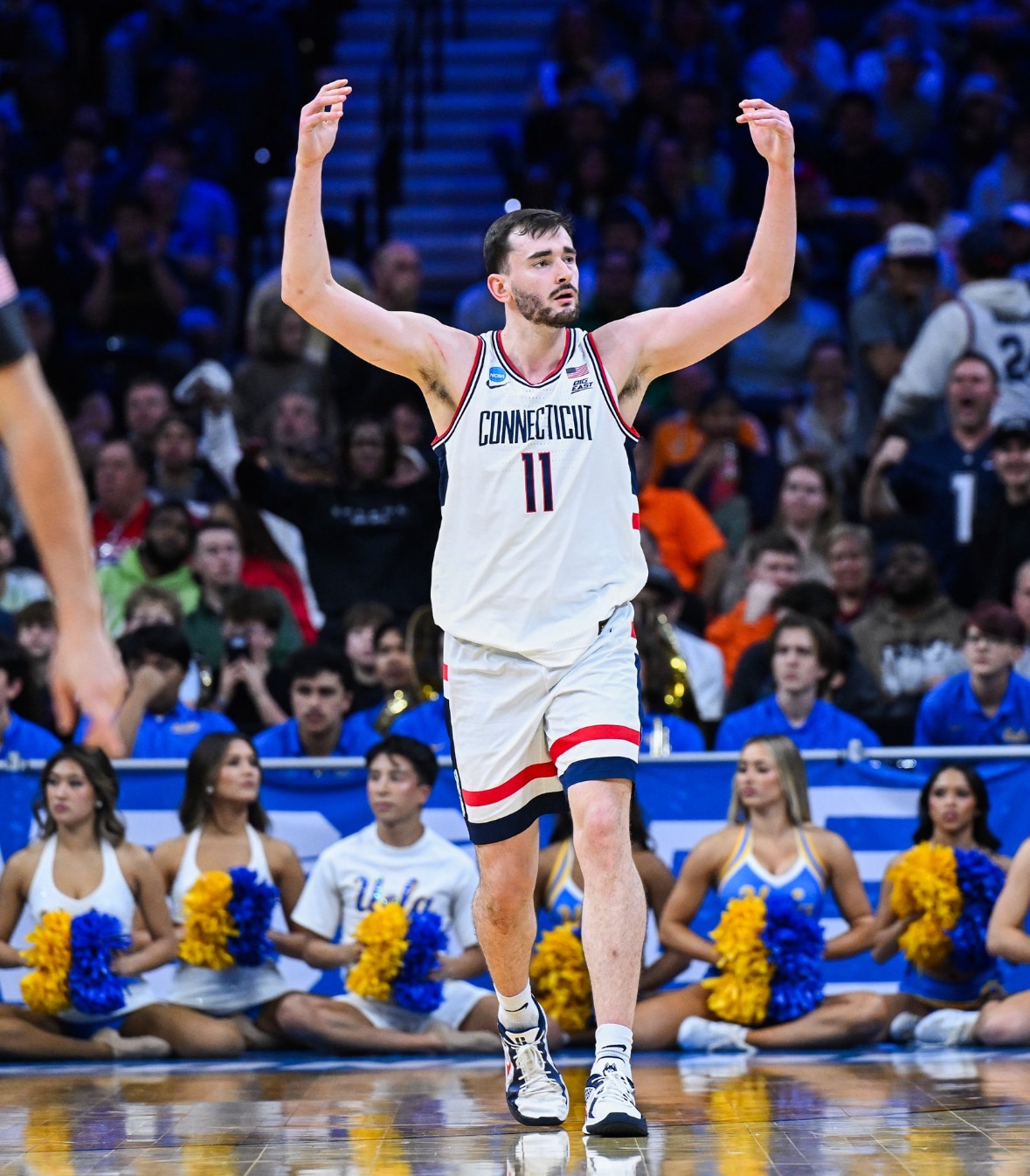To help send UConn to the Sweet 16 in Washington DC, Alex Karaban scored a career-high 27 points against UCLA Sunday night in the Round of 32, including 16 in the second half – Image Credit: UConn Men’s Basketball