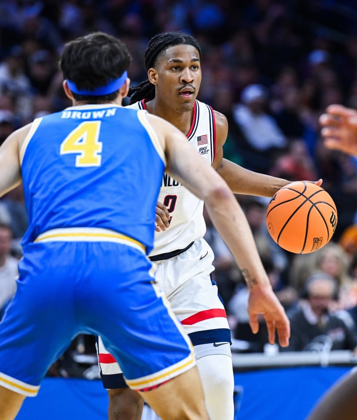 To give UConn a 38-33 lead after 20 minutes of play, Jayden Ross scored nine first half points in Sunday night’s Round of 32 win vs. UCLA – Image Credit: UConn Men’s Basketball