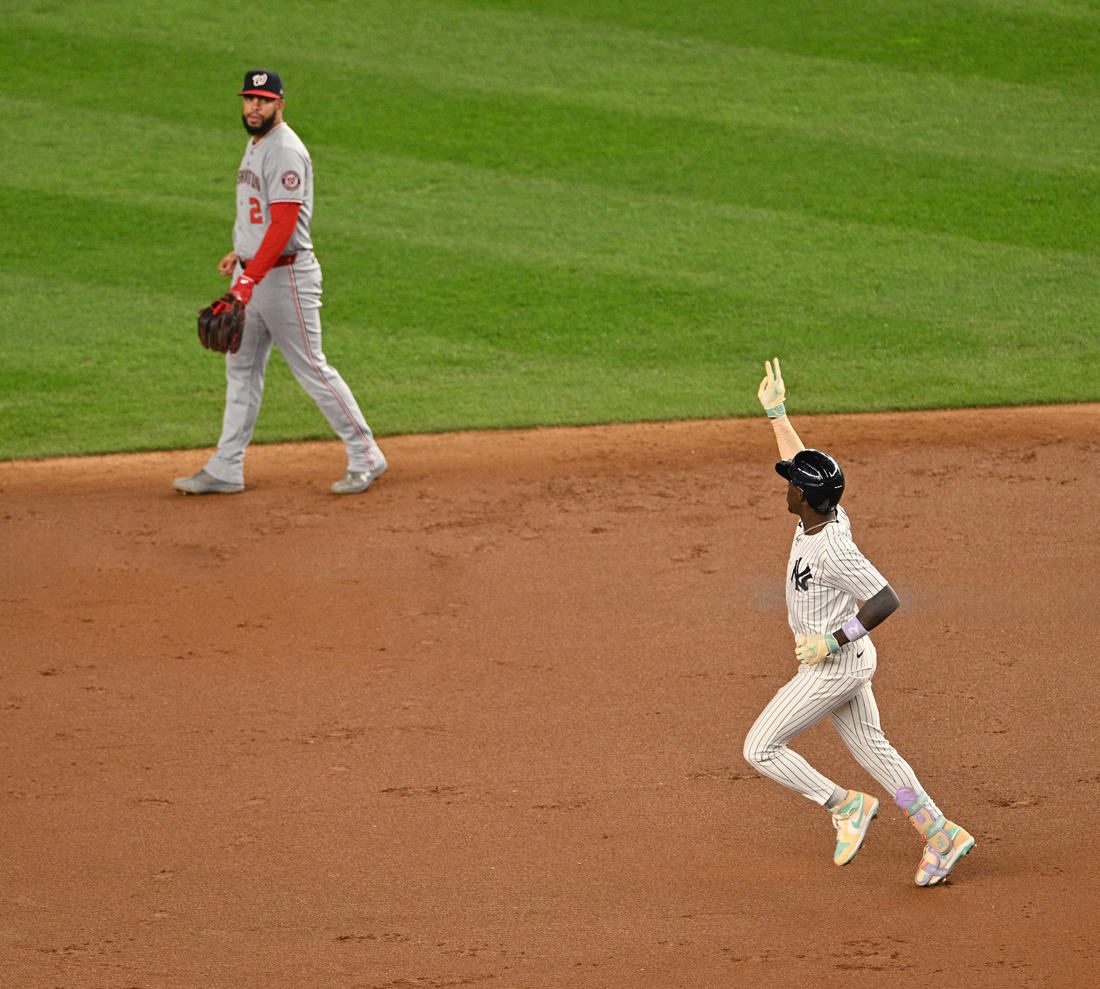 Jasson Domínguez added to the Yankees’ series opening beatdown on the Nationals with a three-run homer, his 10th of the season – Image Credit: Bill Menzel/Latino Sports