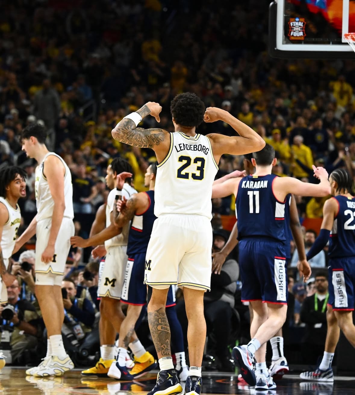 One key storyline leading up to UConn-Michigan’s battle for all of the marbles Monday was Lendeborg’s status after fighting through lower body injuries to his left calf and ankle in the Wolverines’ Final Four win over Arizona this past Saturday.